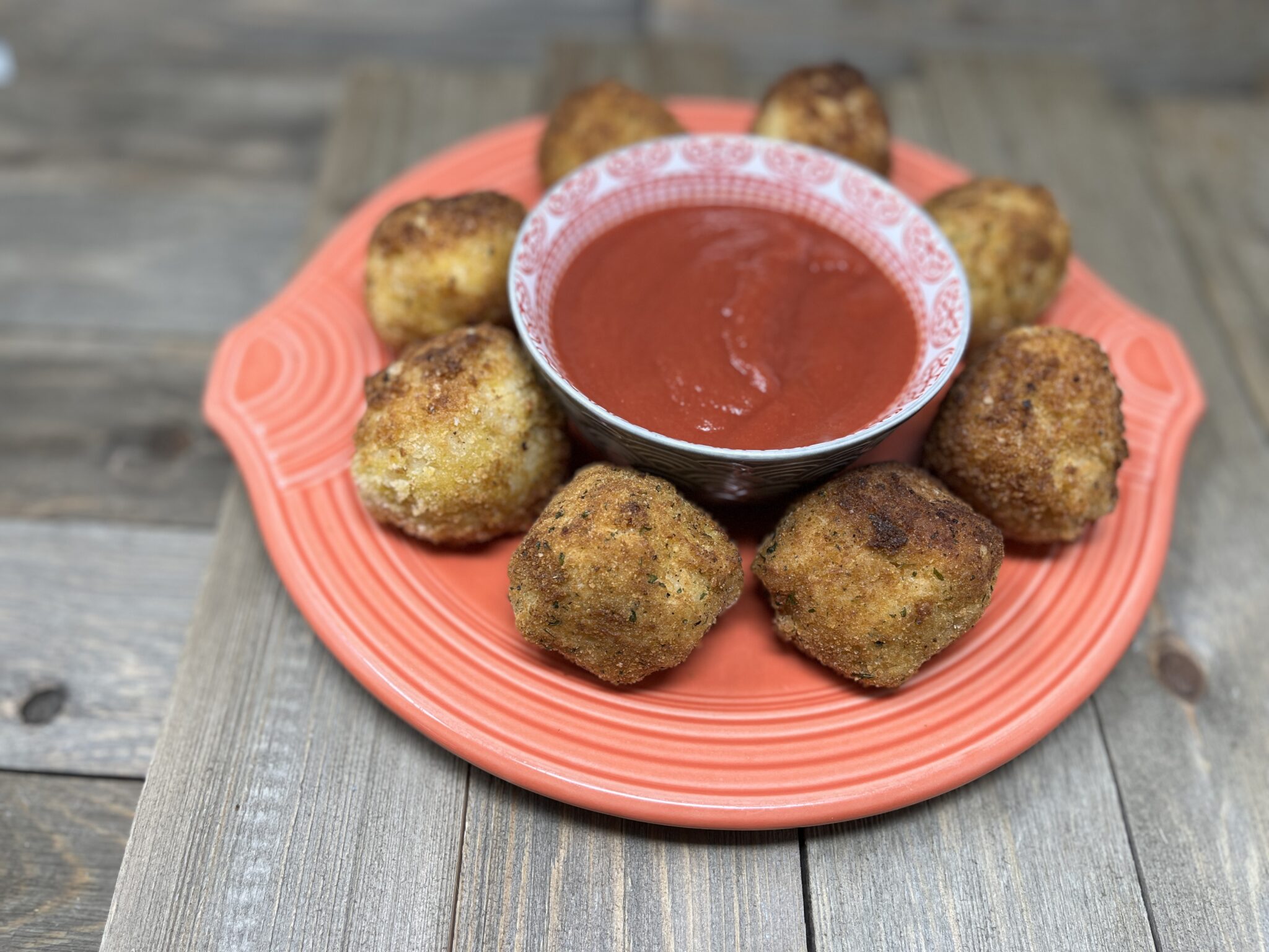 These crispy rice balls mimic the beloved store version with a cheesy, risotto-style center. They’re fried until golden and best served warm. Great as appetizers or snacks. Marinara on the side makes them even better.