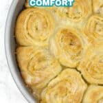 Soft spirals come together quickly without any rising time, making them perfect for busy mornings. Dough is tender and bakes up fluffy with a sweet cinnamon-sugar filling. A simple glaze on top adds just the right touch of sweetness. Comforting flavor without the wait that yeast dough requires.