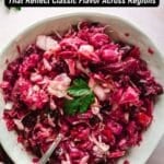 Colorful root vegetables, pickles, and dill come together in a tangy, well-balanced salad full of texture. The combination of earthy and bright flavors makes it perfect for holidays or everyday meals. Each bite feels both hearty and refreshing. A traditional dish that brings a sense of nostalgia to the table.
