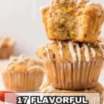 These muffins taste like a cinnamon roll without the roll fuss. A cinnamon‑sugar swirl runs through each one. The tops may get a light glaze after baking. Soft and aromatic with every bite.