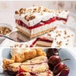 Layers of graham crackers, cherry filling, and cheesecake-style cream stack up in this no-bake dessert. After chilling, the layers soften into a sliceable treat. Each bite is creamy, sweet, and a little tart. No oven, no fuss.