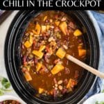 Adapted from Real Simple’s Slow Cooker Vegetarian Chili with Sweet Potatoes.